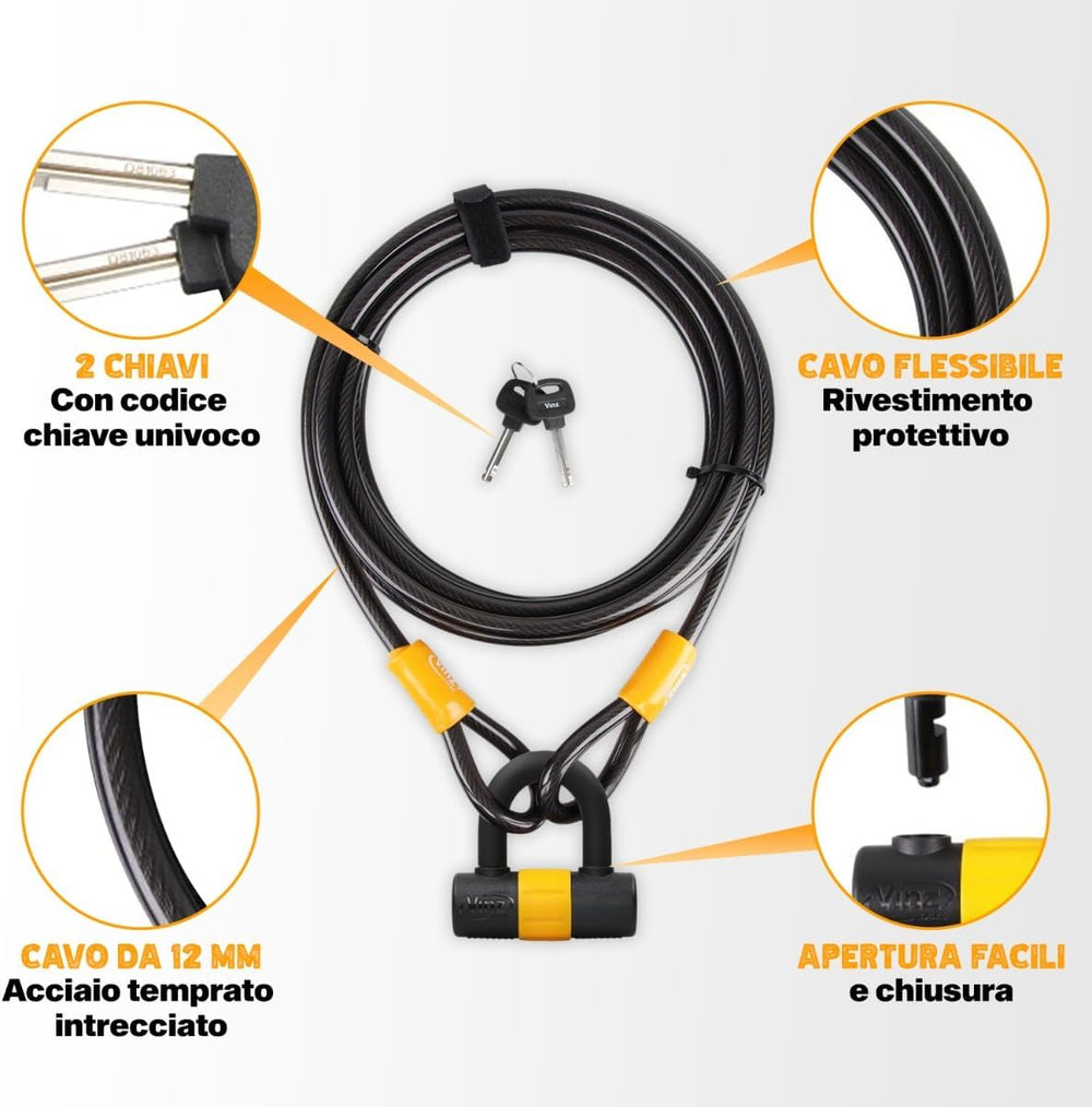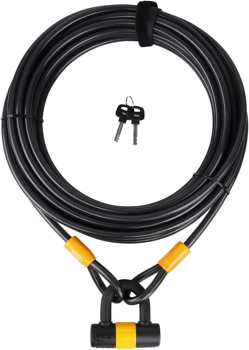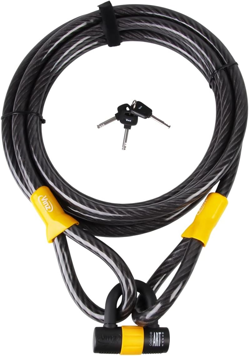 VINZ Kinabalu Kabelschloss / Schlaufenkabel ø12mm | 10 meter lang | Stahlseil mit Schloss mit Kunsts