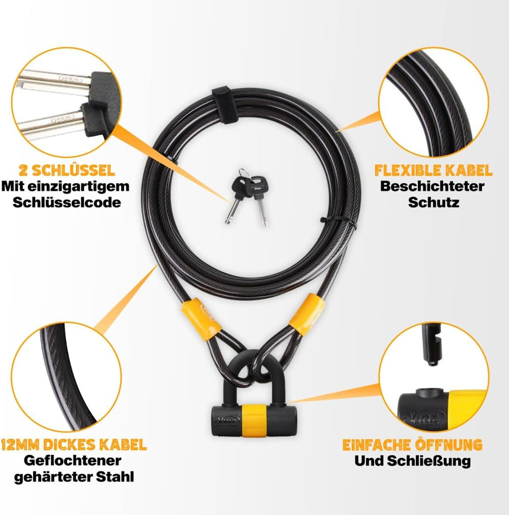 VINZ Maipo Fahrradschloss ø16mm | Bügelschloss mit 1,5m Schlaufenkabel für Fahrrad Mountainbike E-Bi
