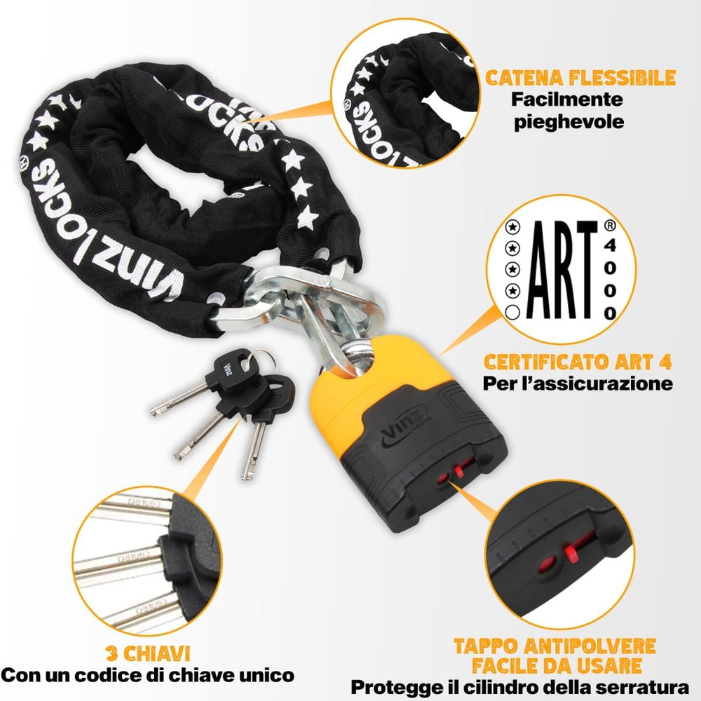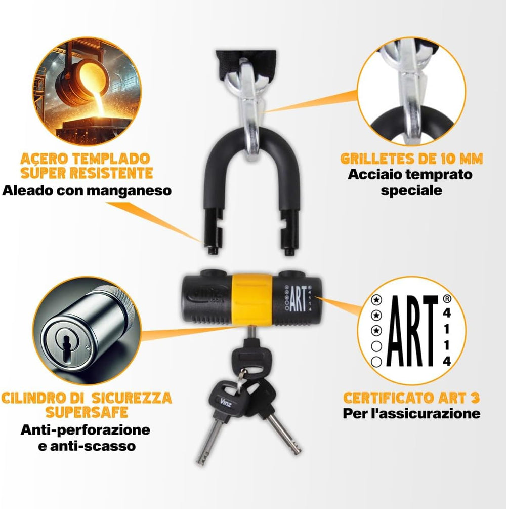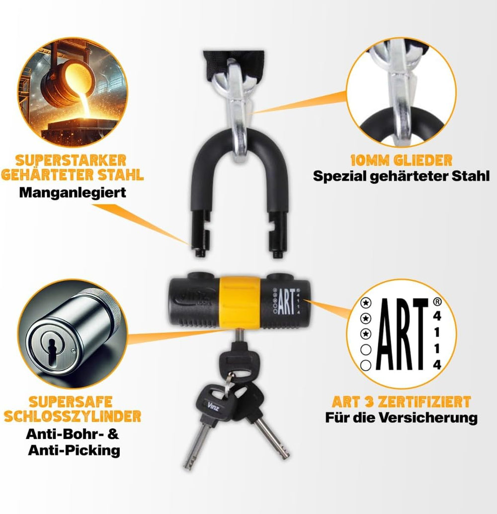 VINZ Kungur Kettenschloss ø10mm | ART 3 Zertifikat | Schloss für Roller Scooter Motorrad Moped E-Bik