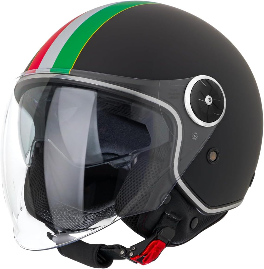 VINZ Neiva Jethelm mit Doppelvisier | Roller Helm Fashionhelm mit Italienische Flagge | In Gr. XS-XX