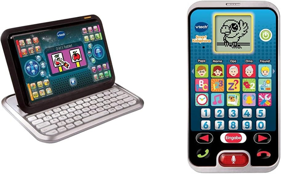 Vtech 80-155504 Tablet 2-in-1, White/Black & 80-139304 - Smart Kid's Phone weiss/black Bundle mit Sm