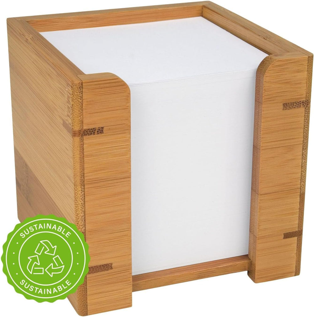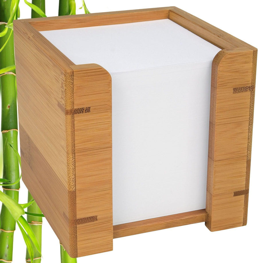 Wedo 61707 Zettelbox Bambus, inkl. 900 Blatt Papier 9 x 9 cm, im Geschenkkarton, braun, Zettelbox