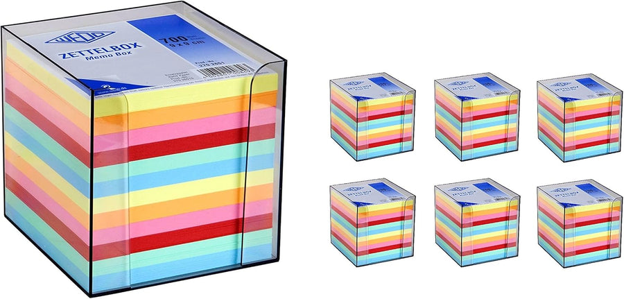 Wedo 2702651 Zettelbox Kunststoff (9 x 9 cm, rauchglas gefüllt, circa 700 Blatt, 6 farbig) (6, Zette