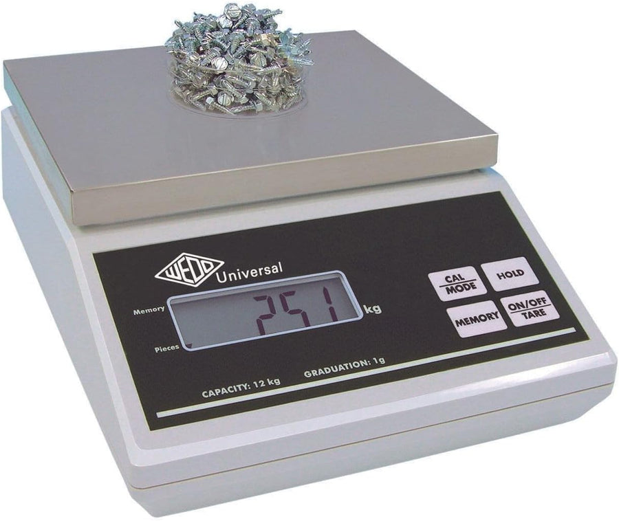 Wedo 507012 Universal Elektronische Wiege- und Stückzählwaag (12kg 12 kg/1g, mit EU-Netzgerät) grau