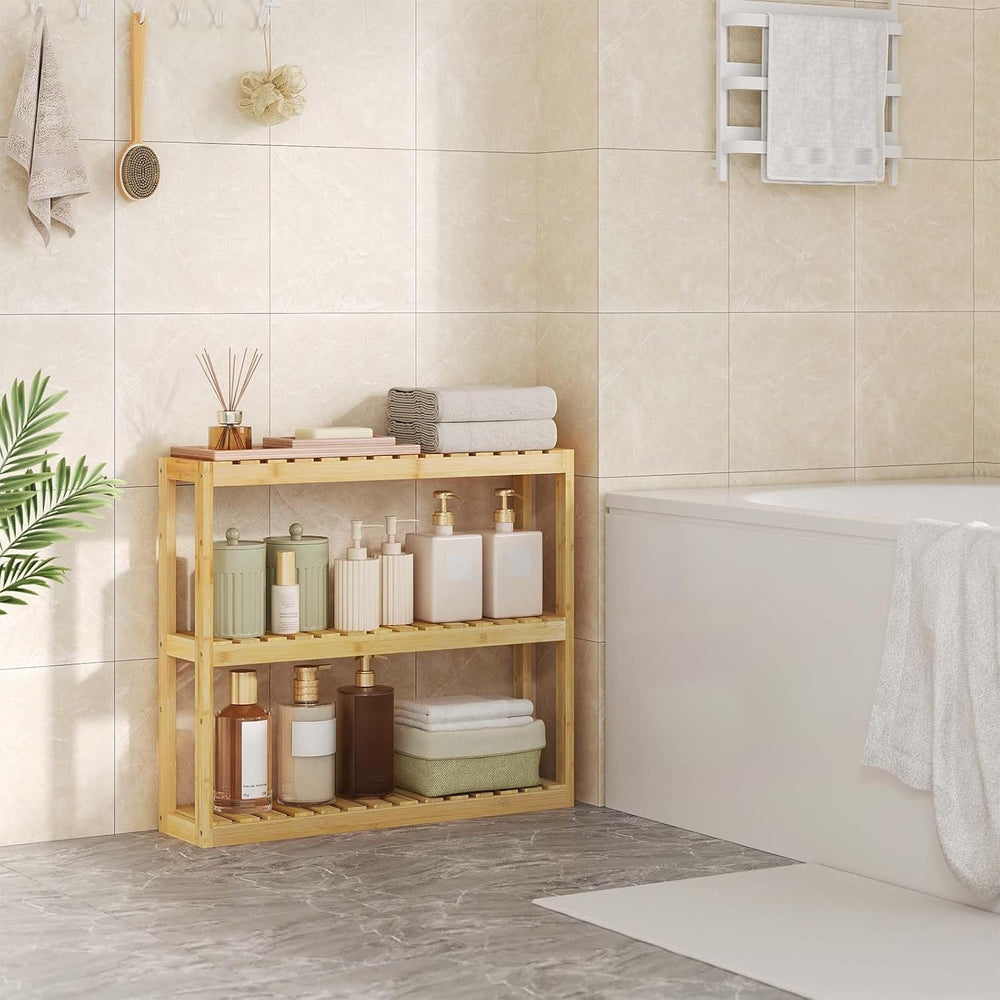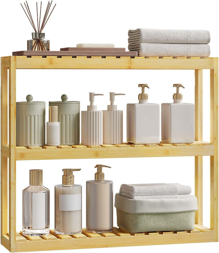 WOLTU Bambus Regal, Hängeregal, Badregal, Wohnzimmerregal, Badezimmerregal stehend, Bücherregal, Sch