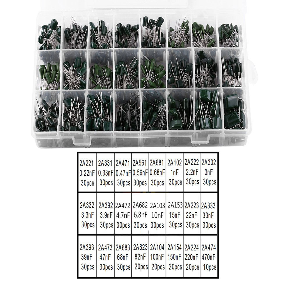 660pcs 24 Werte Polyester Folienkondensatoren Sortiment Kit 100V 0.22nF bis 470nF mit klarer Kunstst