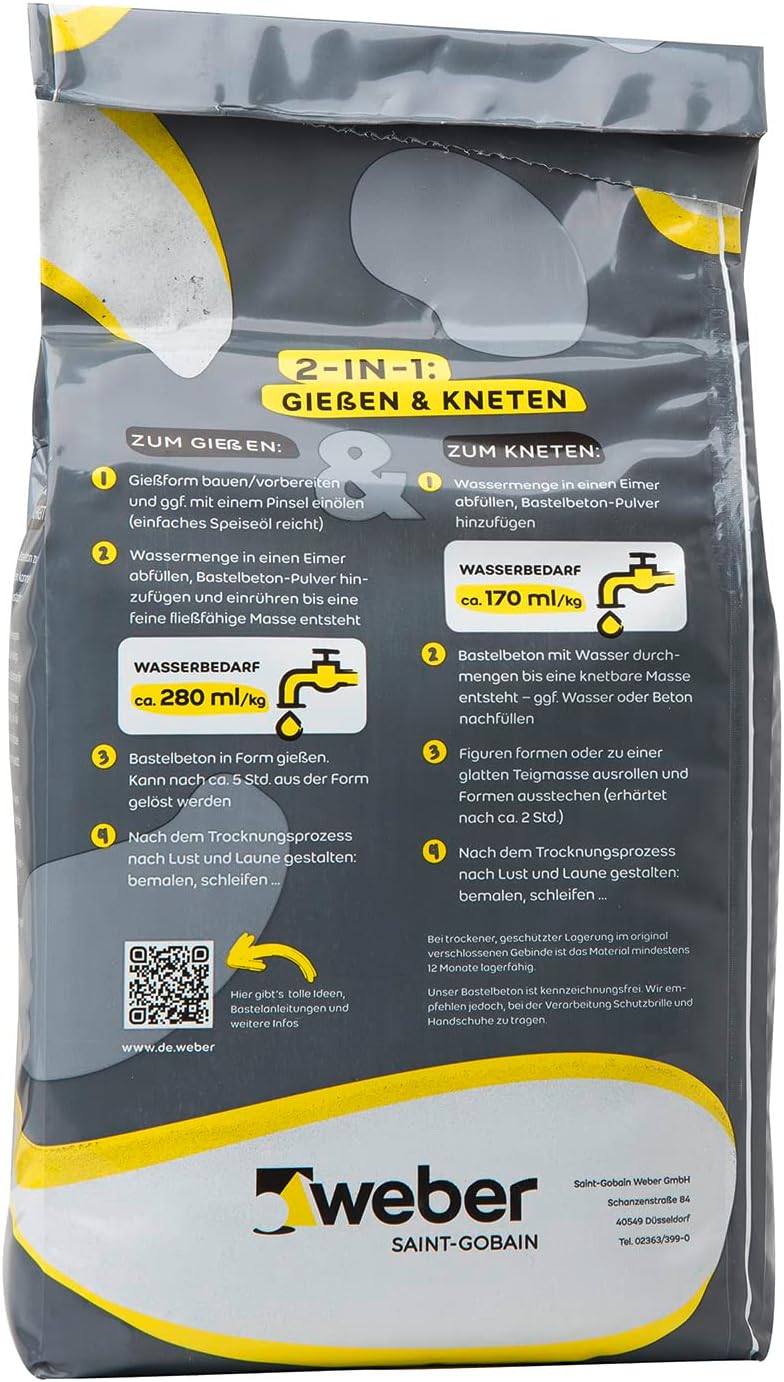 WEBER | Bastelbeton 5 kg | zum Giessen & Kneten | bemalbar, lackierbar, schleifbar | für Hobby- & Kr