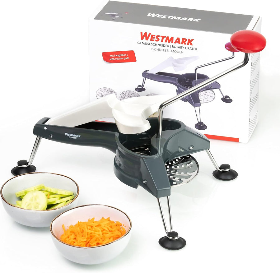 Westmark Gemüseschneider mit Edelstahlklingen - kompakter Gemüsehobel inkl. 3 Scheiben - ideal zum h