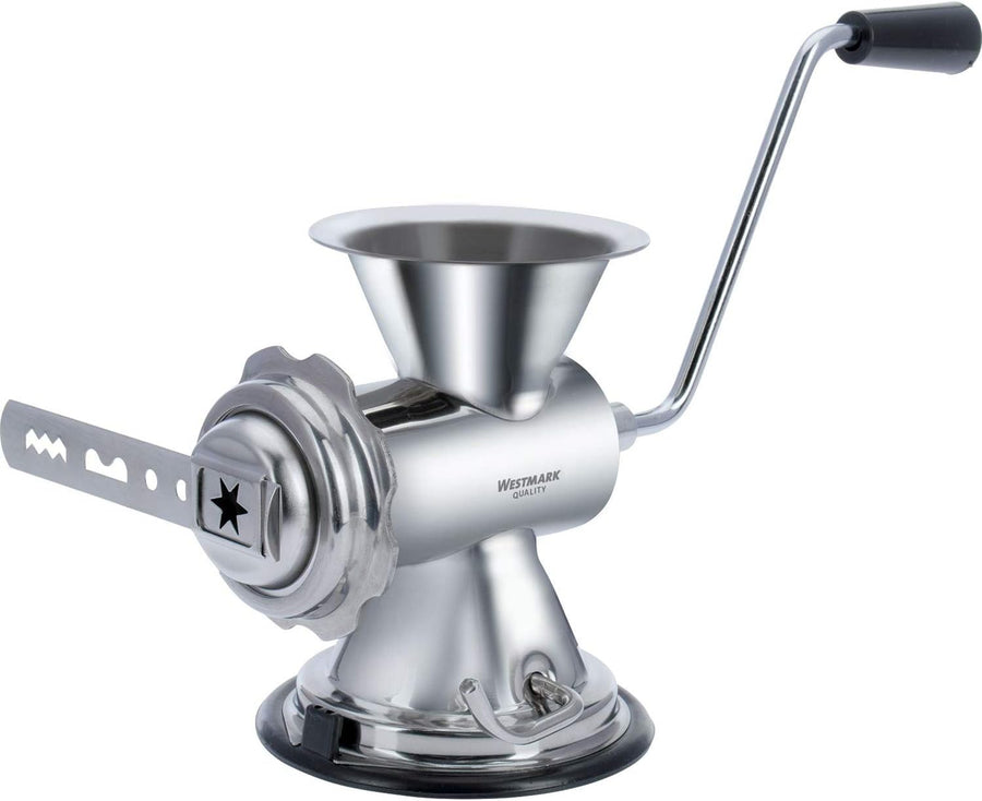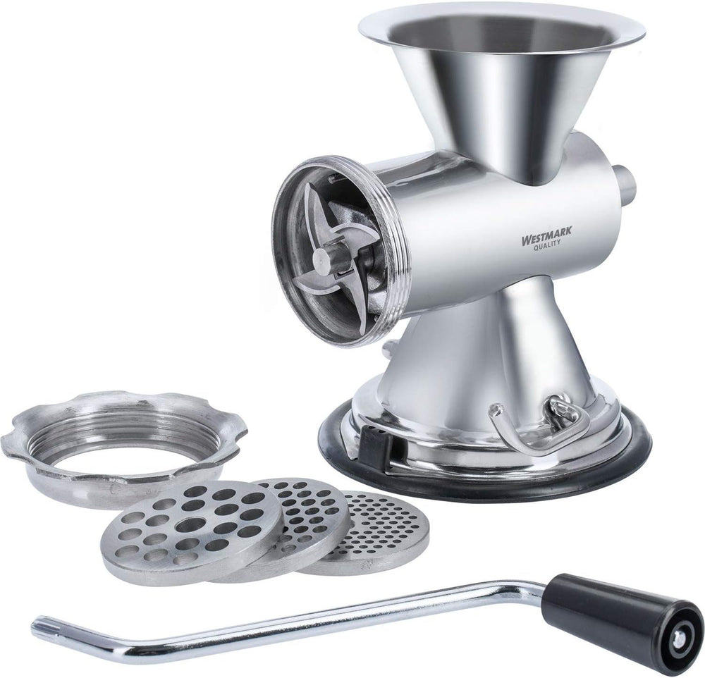 Westmark Fleischwolf mit 2 Lochscheiben und Spritzgebäckvorsatz, Grosser Saugfuss, Kunststoff/Rostfr
