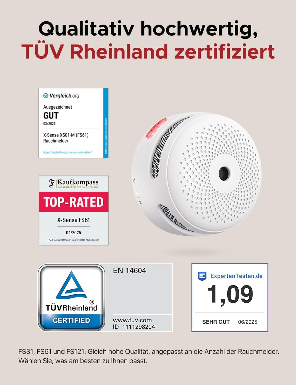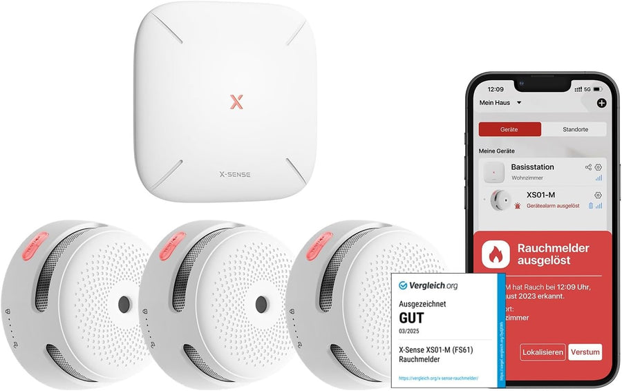 X-Sense XS01-M ProConnected Rauchmelder mit SBS50 Basisstation, TÜV-Zertifiziert, Funkrauchmelder-He