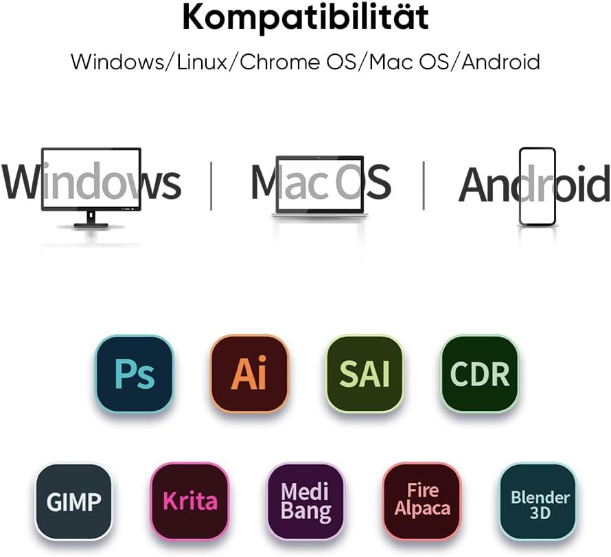 XPPen Deco 640 Grafiktablett, 16384 Druckstufen, 60° Neigungsunterstützung, Geeignet für OSU, Videob