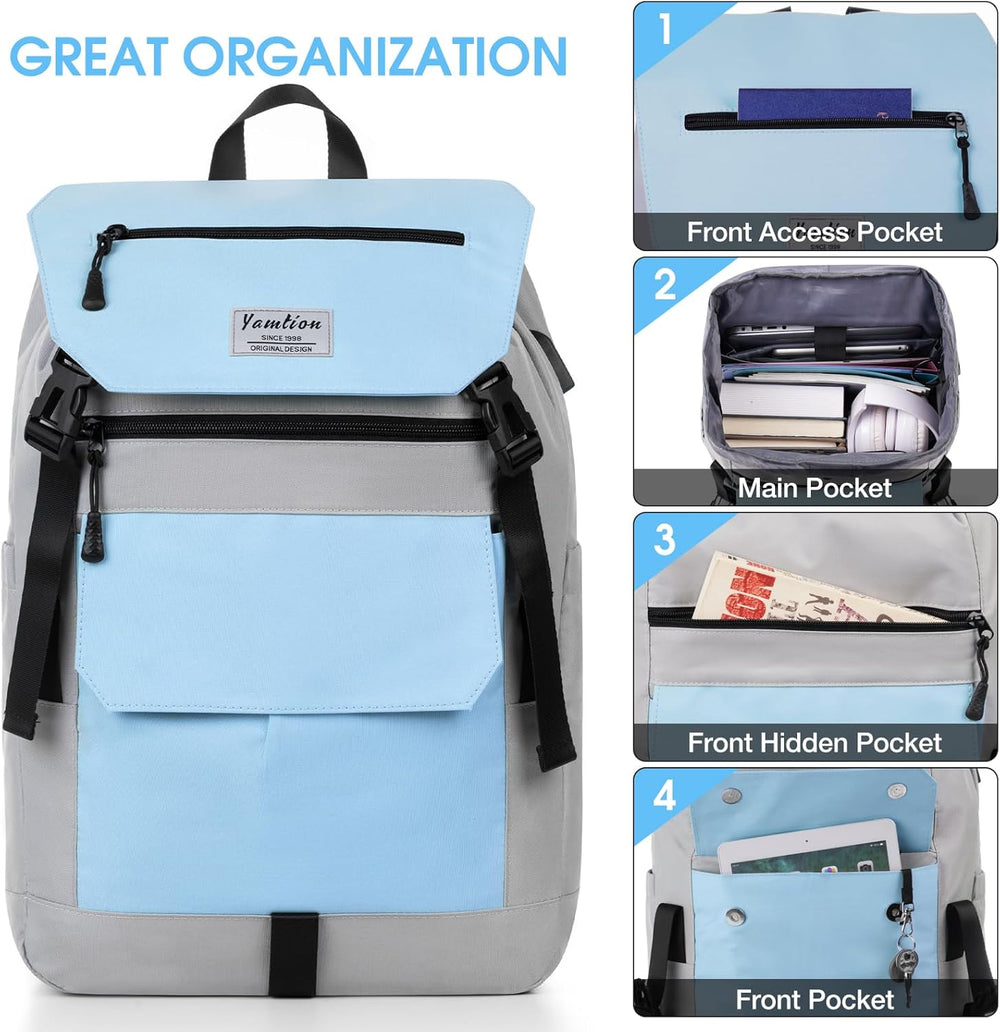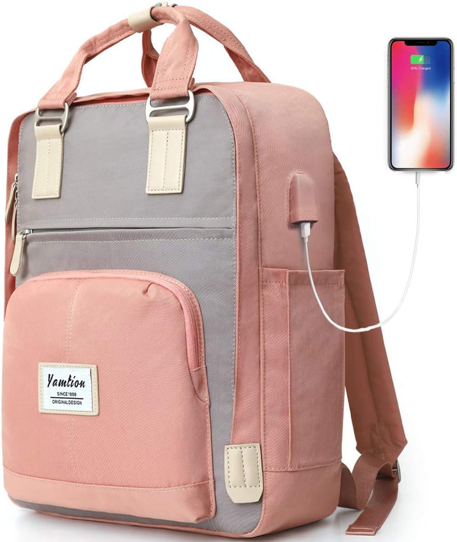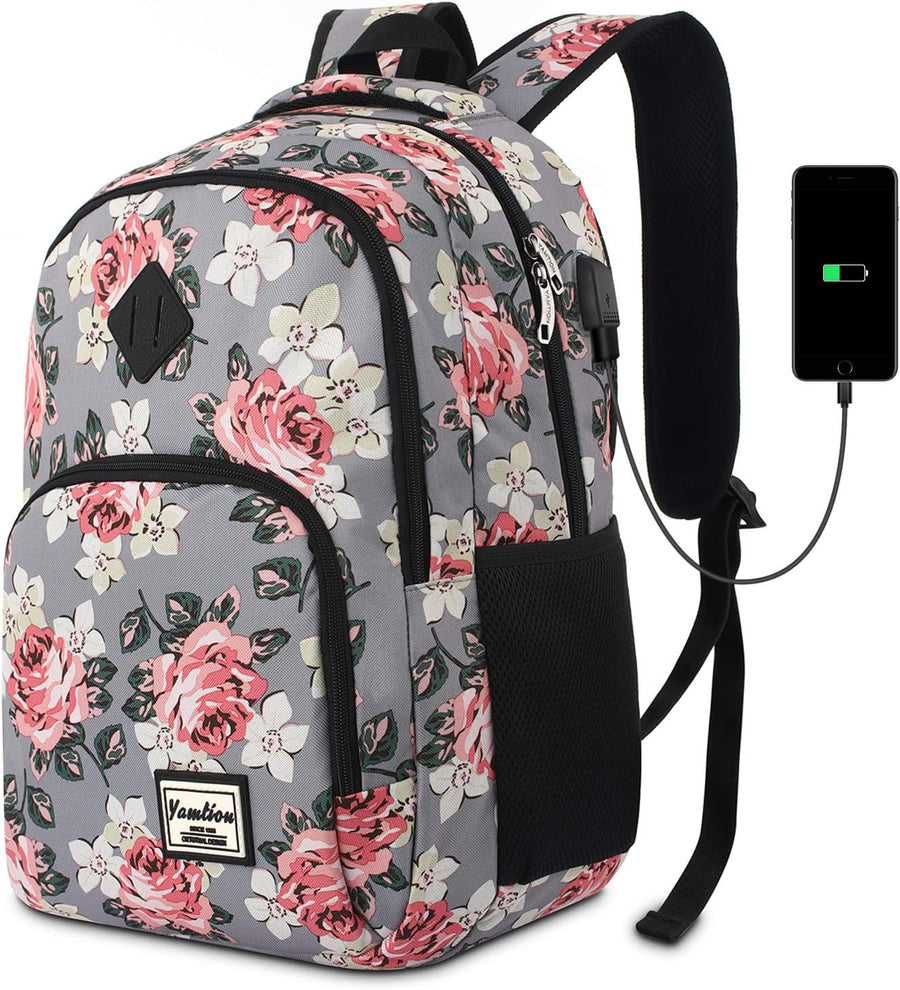 YAMTION Rucksack Damen,Schulrucksack Frauen Schultasche Mädchen Teenager Tagesrucksack mit USB und L