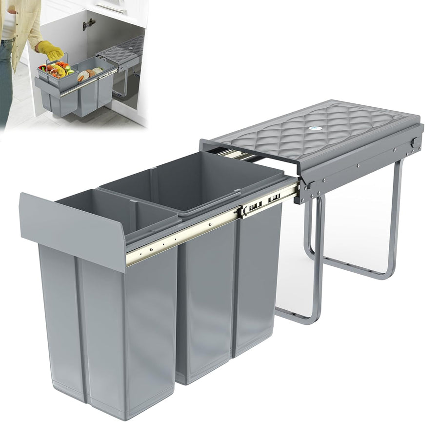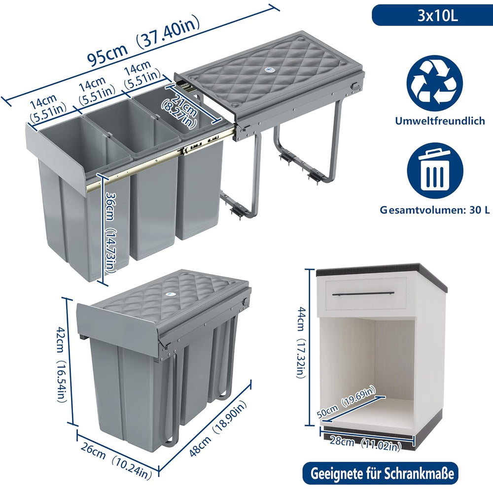 YRHome Einbau Mülltrennungs-System Abfallsortierer 3 Herausnehmbare Abfallsammler Tandemusziehbarer