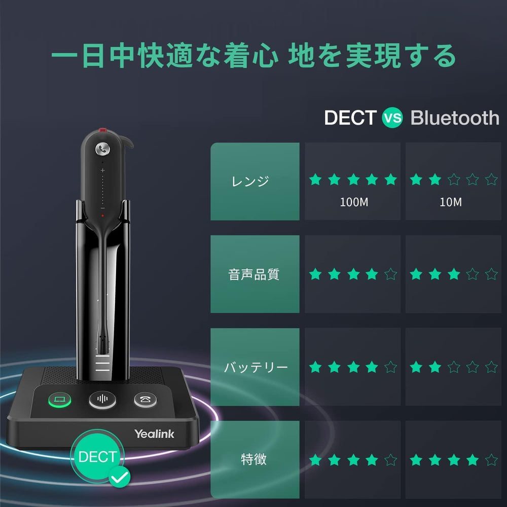 Yealink WH62 Schnurloses DECT-Headset Teams Zertifiziert, EIN-Ohr-Büro-Headset für Tischtelefon und