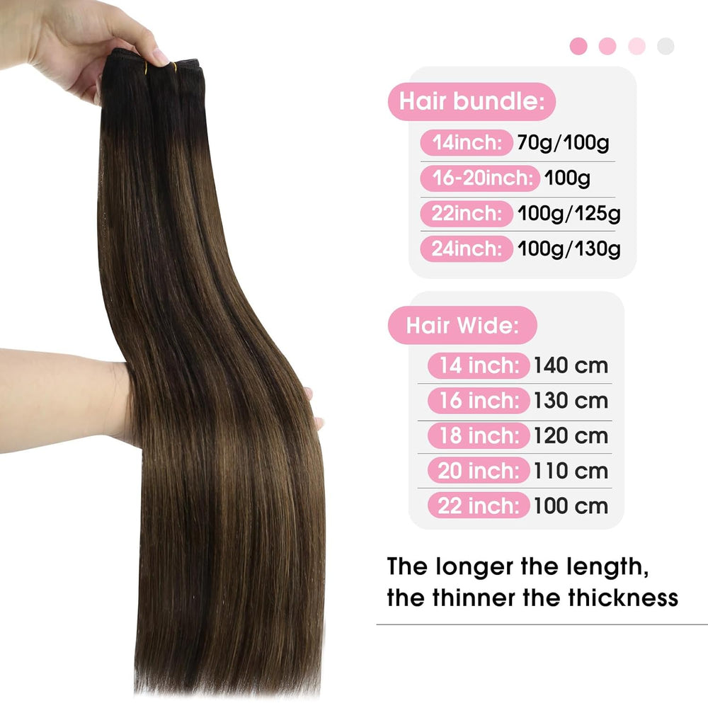 YoungSee Echthaar Tressen Ombre Tressen Echthaar zum Einnahen 45cm Haartressen Echthaar Dunkelbraun
