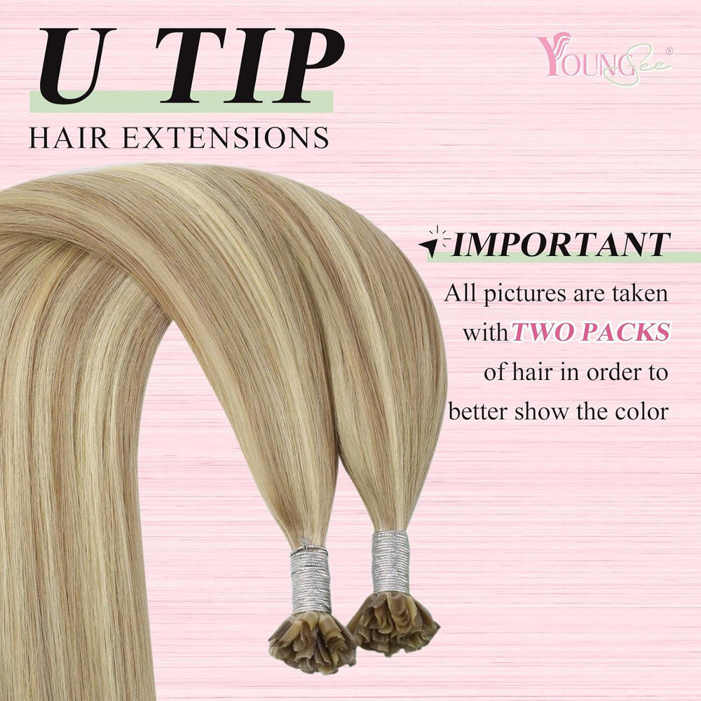YoungSee Extensions Echthaar Bondings Ombre Bonding Extensions Echthaar Braun Ombre Blond U Tip Exte