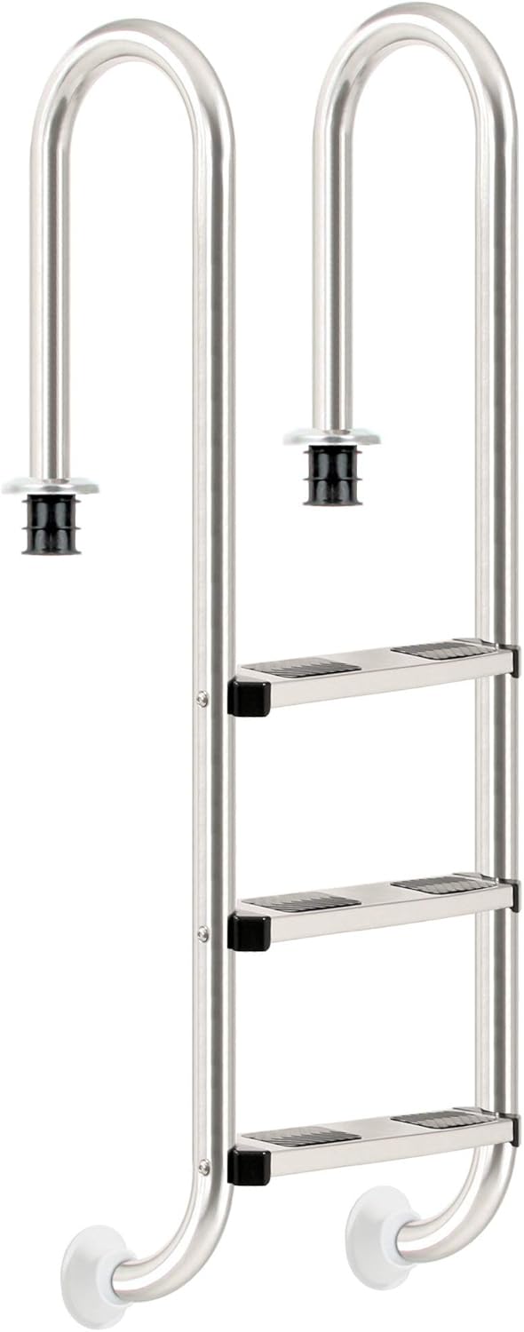 Zelsius V2A Edelstahl Poolleiter mit 3 Stufen | 50 x 26,5 x 132 cm - Silber | mit Rutschsicherung |