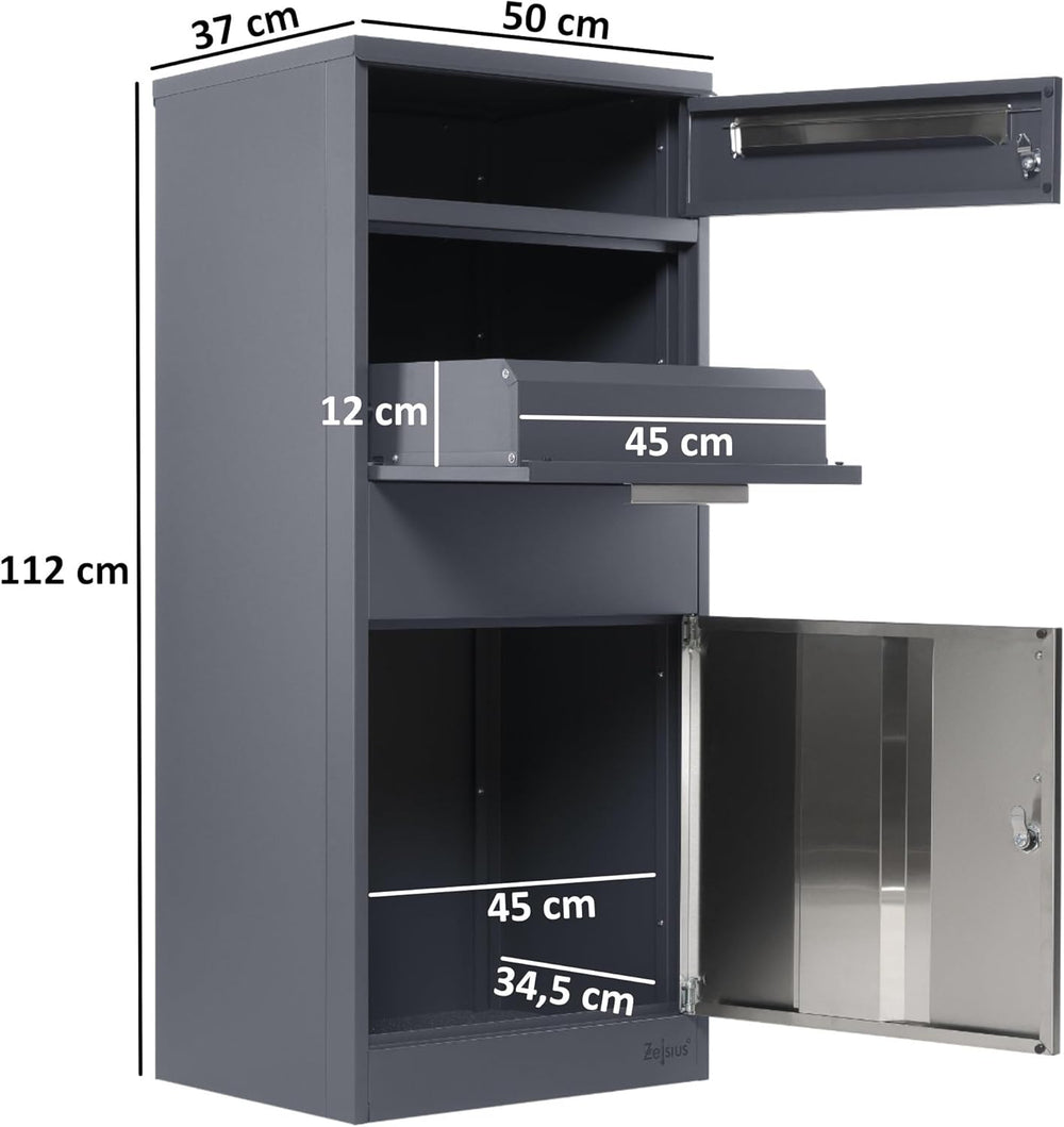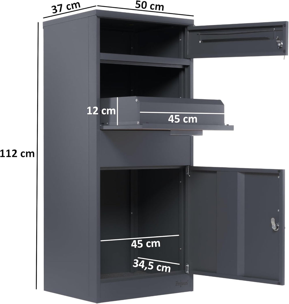 Zelsius Paketbriefkasten | RAL7016 Anthrazit | verzinkter pulverbeschichteter Stahl mit Edelstahl El
