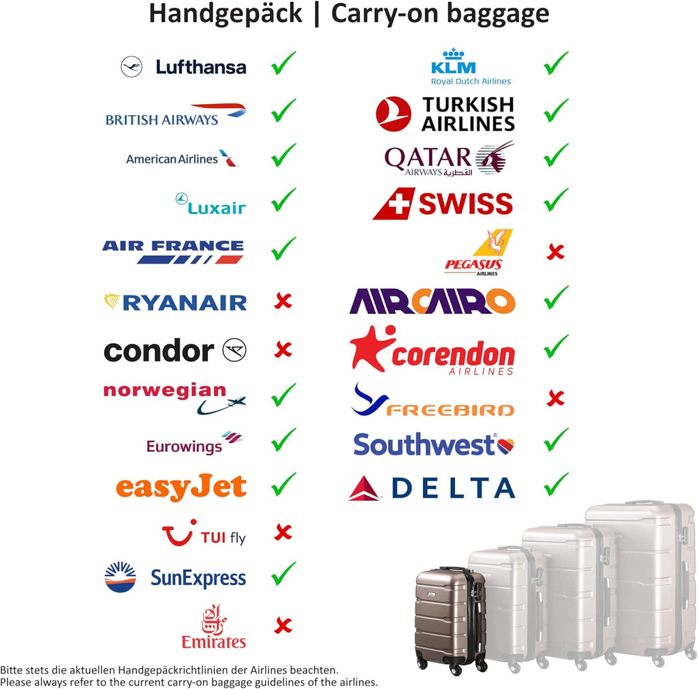 Zelsius Koffer Set 4 Stück, Champagner | ABS Hartschalenkoffer mit Zahlenschloss, 4 Rollen und Innen