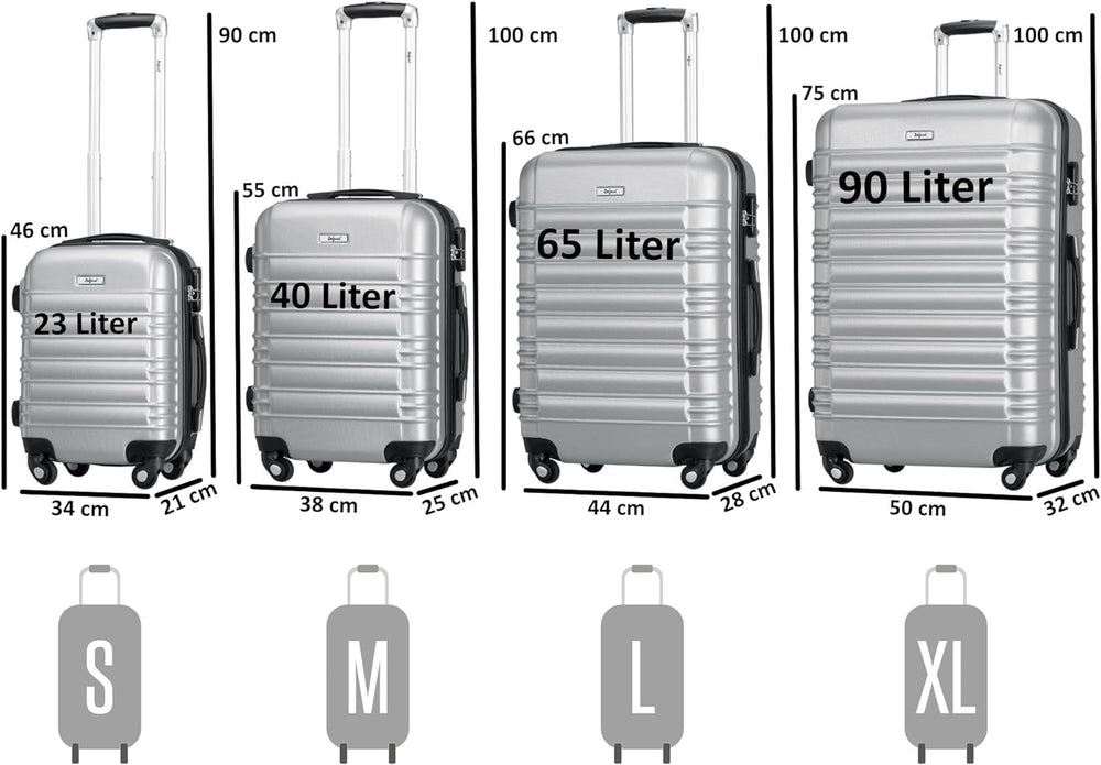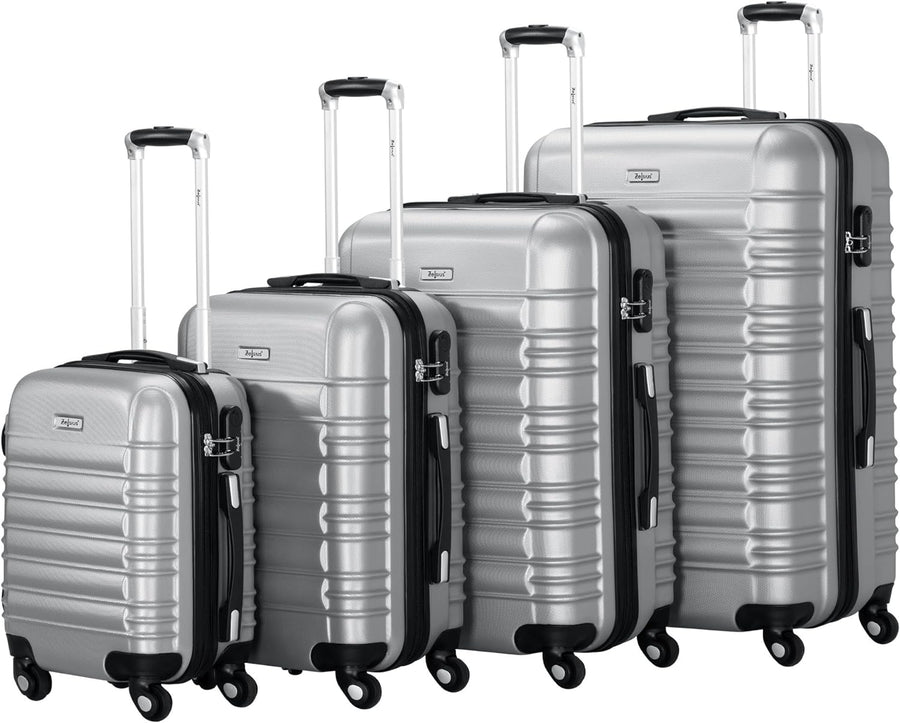 Zelsius Koffer Set 4 Stück, Grau | ABS mit Zahlenschloss, 4 Rollen und Innen Trennwand | Handgepäckk