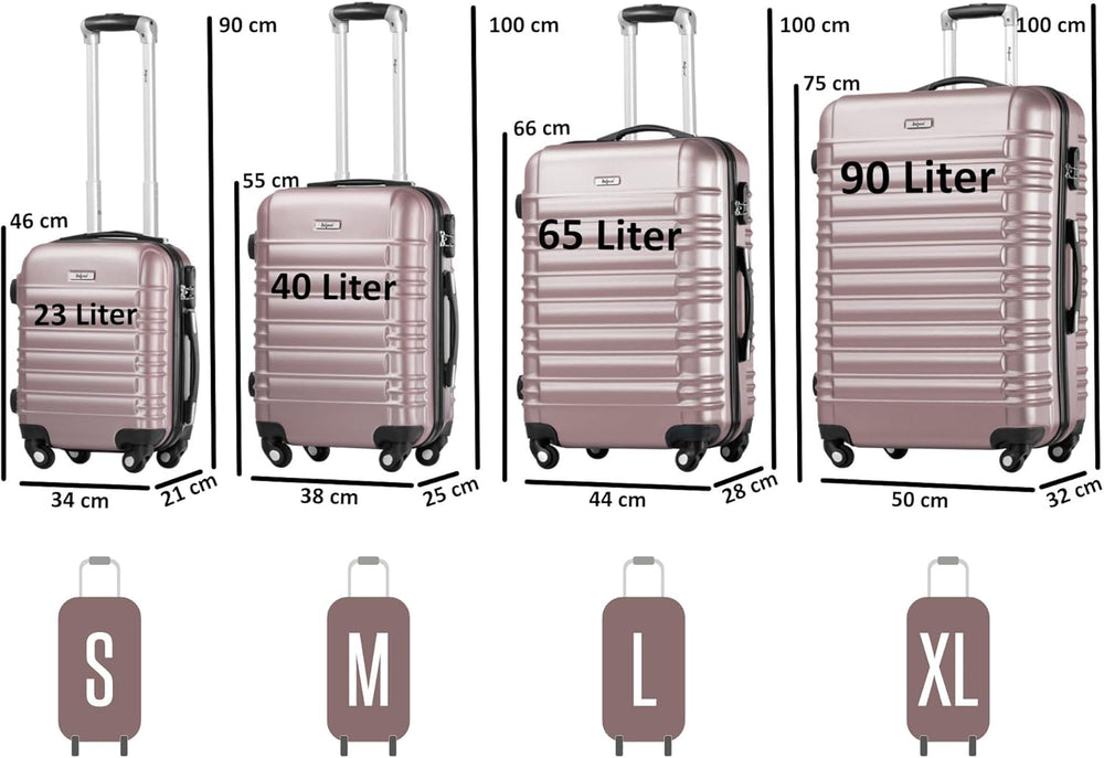 Zelsius Koffer Set 4 Stück, Rosé | ABS Hartschalenkoffer mit Zahlenschloss, 4 Rollen und Innen Trenn