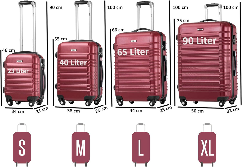 Zelsius Koffer Set 4 Stück, Rot | ABS Hartschalenkoffer mit Zahlenschloss, 4 Rollen und Innen Trennw