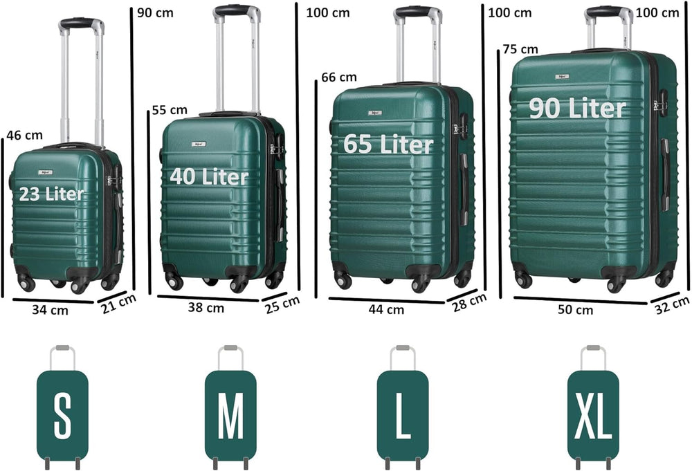 Zelsius Koffer Set 4 Stück, Petrol Grün | ABS Hartschalenkoffer mit Zahlenschloss, 4 Rollen und Inne