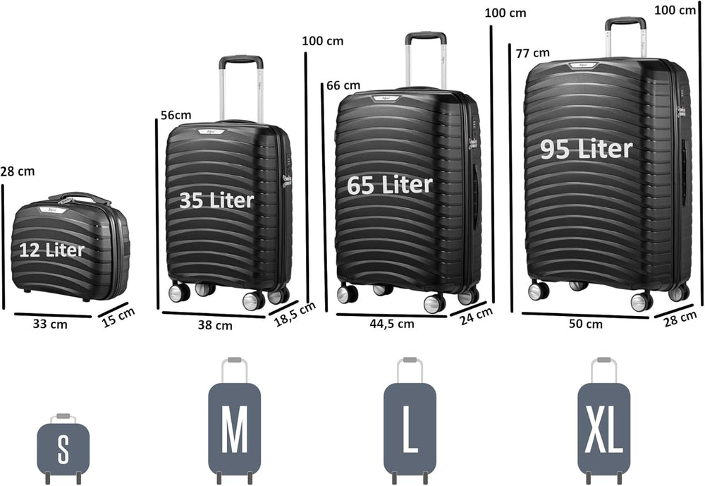Zelsius Koffer Set 4 Stück, Schwarz | ABS Hartschalenkoffer mit Zahlenschloss, 4 Rollen und Innen Tr