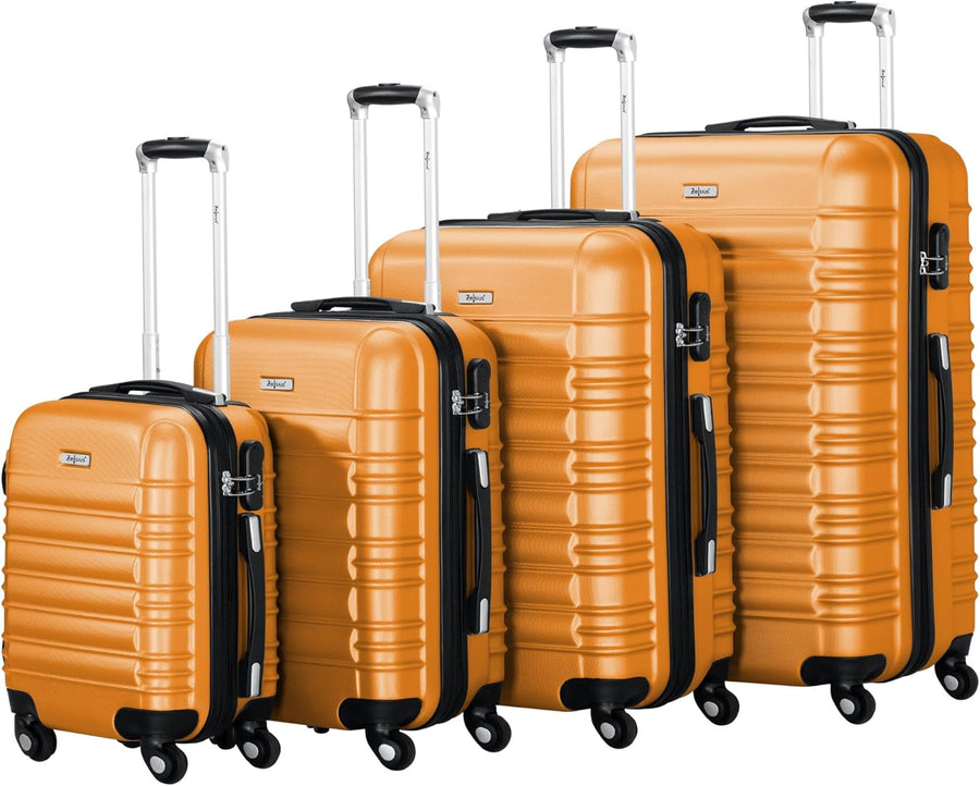 Zelsius Koffer Set 4 Stück, Orange | ABS Hartschalenkoffer mit Zahlenschloss, 4 Rollen und Innen Tre