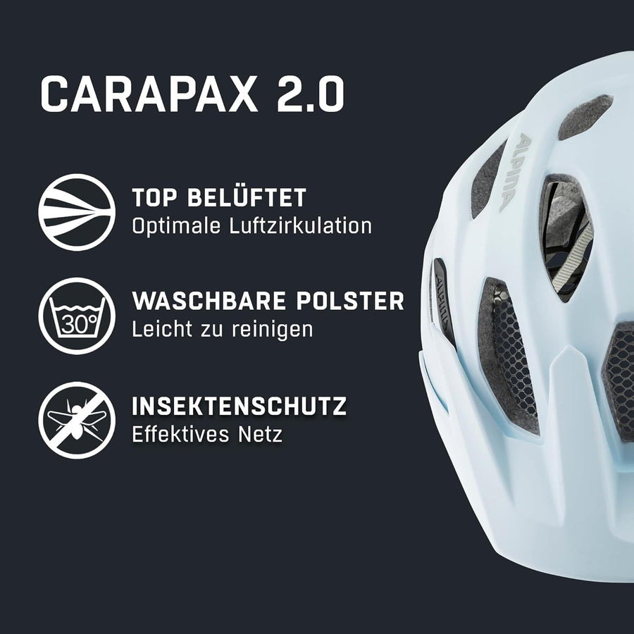 ALPINA CARAPAX 2.0 - Leichter, Stabiler & Komfortabler Fahrradhelm Mit Fliegennetz & Antibakterielle