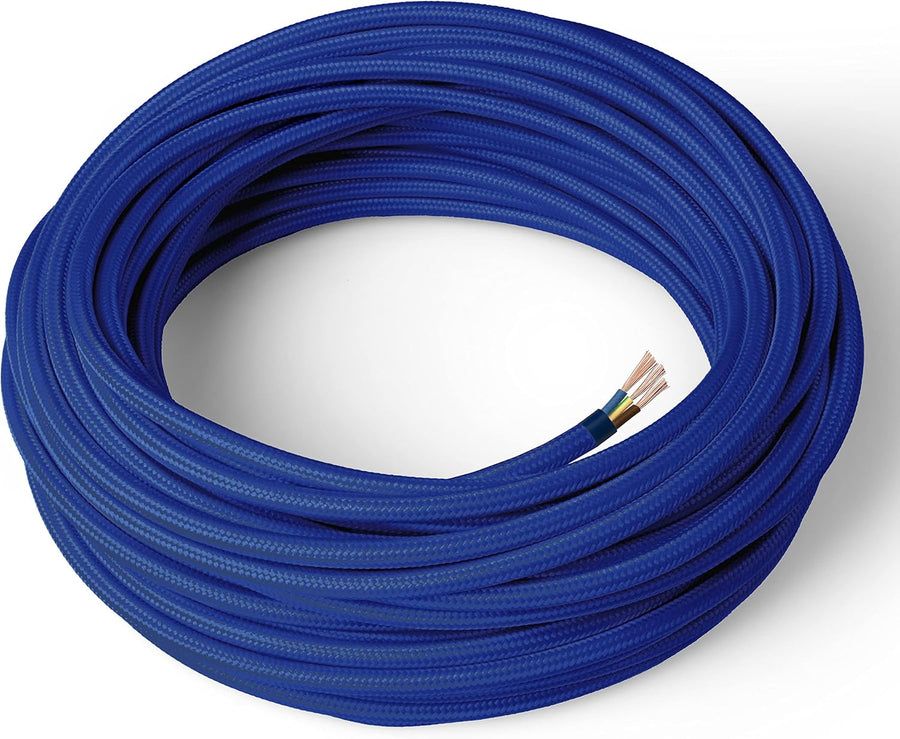 Amarcords - Textilkabel für Lampen BLAU, rund, Seide, 30 Meter, mit 2 Leiter 2x0,75 - Stoffkabel mit