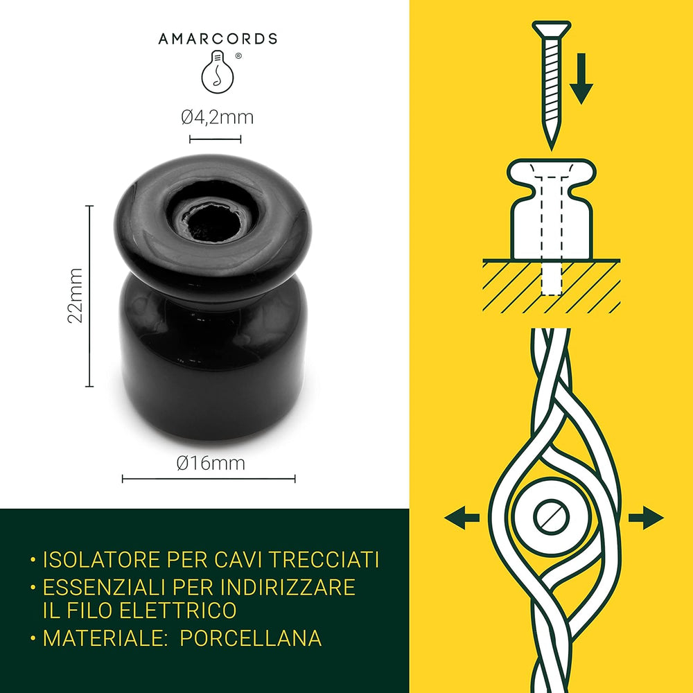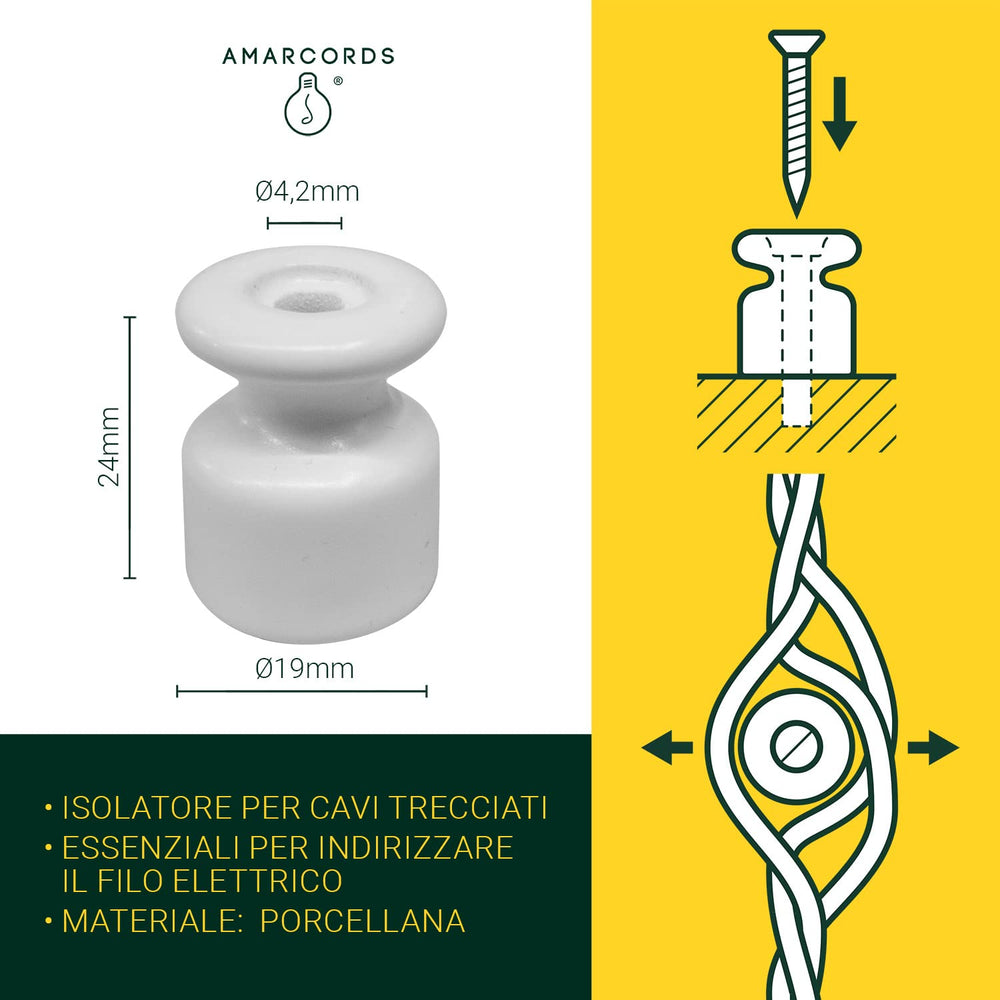 Amarcords - Isolatoren aus Porzellan für die Installation mit Geflochte Textilkabel [50 Stück] - Kab