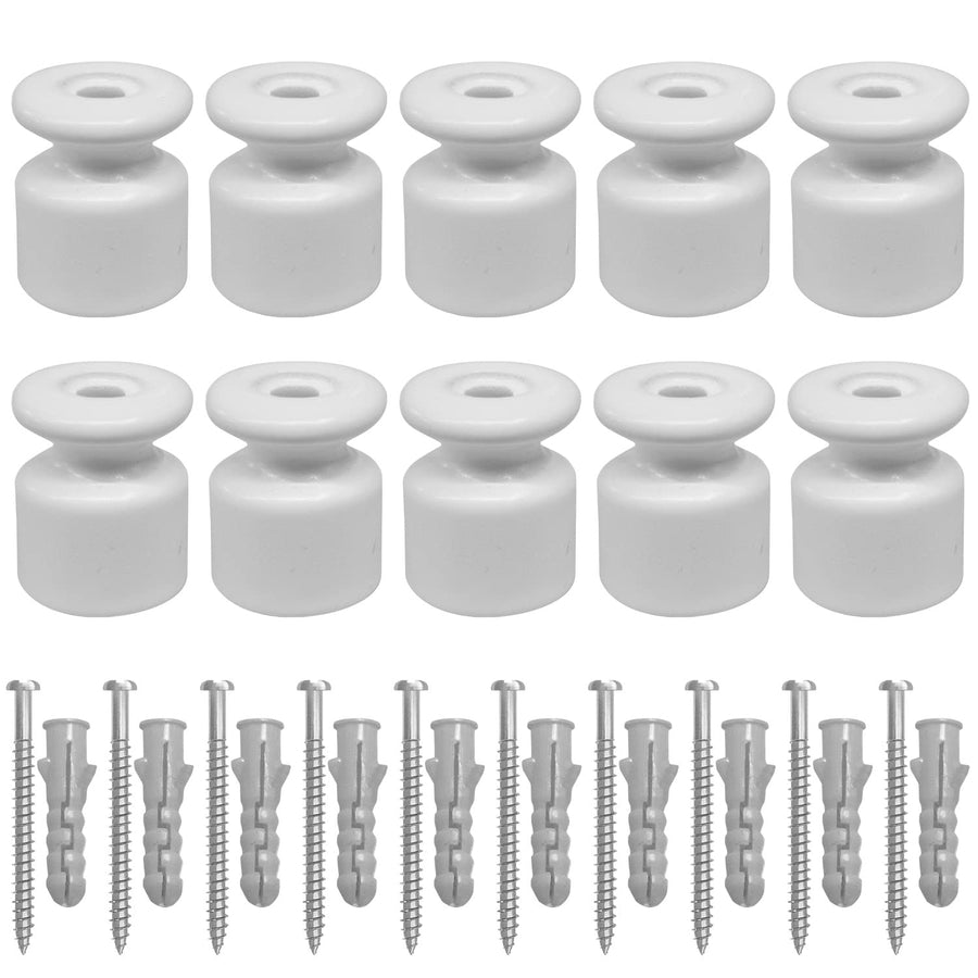 Amarcords - Kabelklemme mit Schrauben und Dübeln. 10 Vintage-farbige Porzellanisolatoren für Kabelin