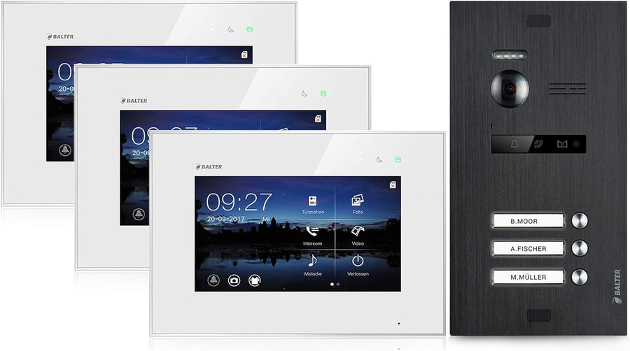 Balter EVO Video Türsprechanlage, Touchscreen, 3X 7 Zoll Monitor, Türstation für Dreifamilienhaus Tü