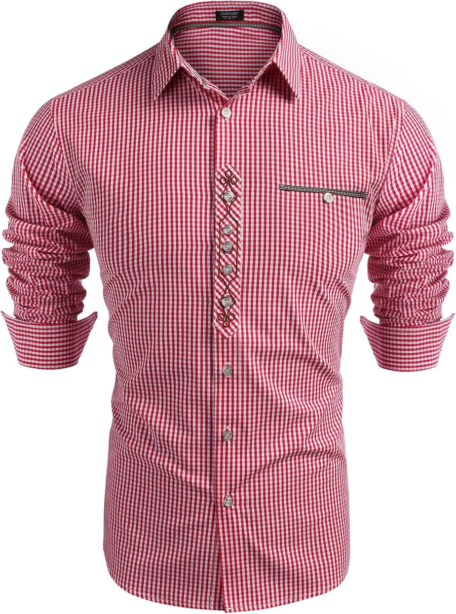 COOFANDY Hemd Herren Langarm Trachtenhemd Kariertes Oktoberfest Hemd Freizeithemd Karohemden Herrenh
