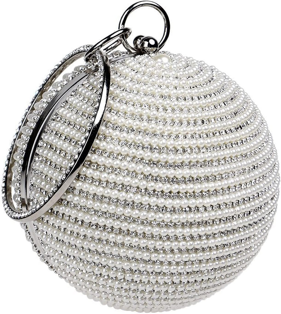 CORIOS Clutch Damen Perlen Abendtasche Runde Kugel Strass Clutch Bag Schultertasche Abnehmbarer Kett