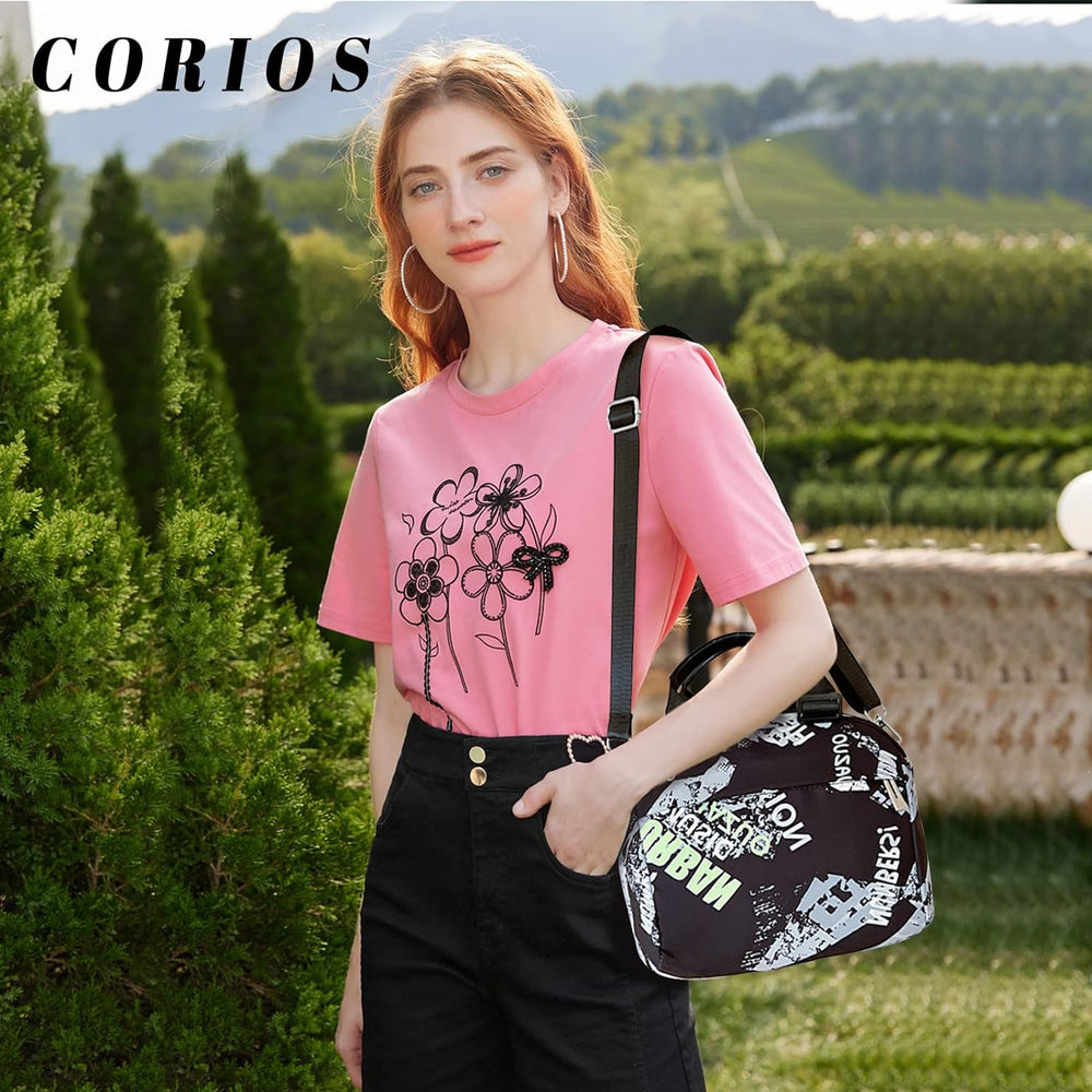 CORIOS Canvas Schultertasche Damen Handtasche Leicht Umhängetasche Henkeltasche Casual Tragetasche T