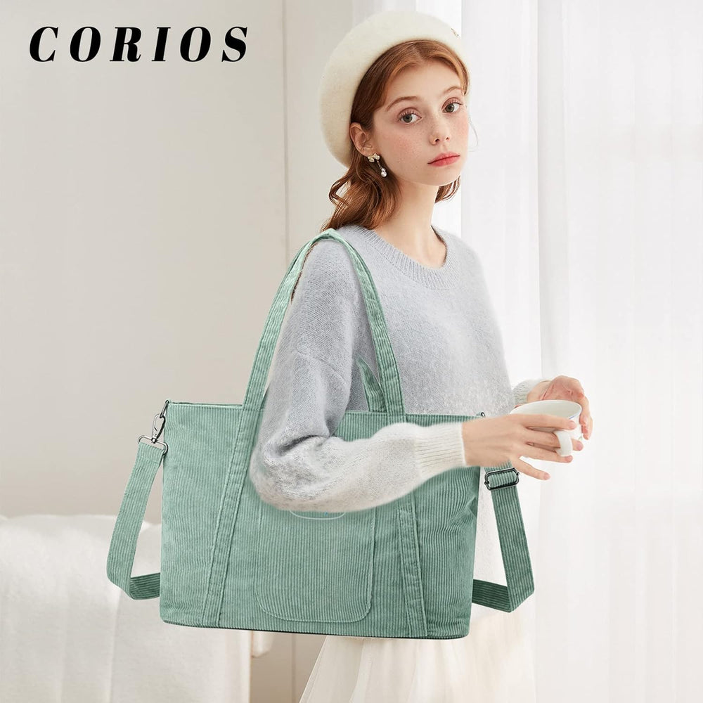 CORIOS Cord Umhängetasche Damen Handtasche Grosse Kapazität Tote Beutel Casual Henkeltasche Tragetas