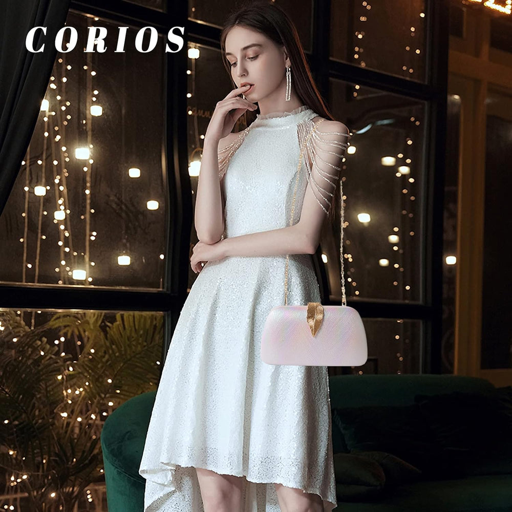 CORIOS Clutch Damen Luxus Abendtasche Glitter Handtasche Glänzend Umhängetasche Elegant Schultertasc