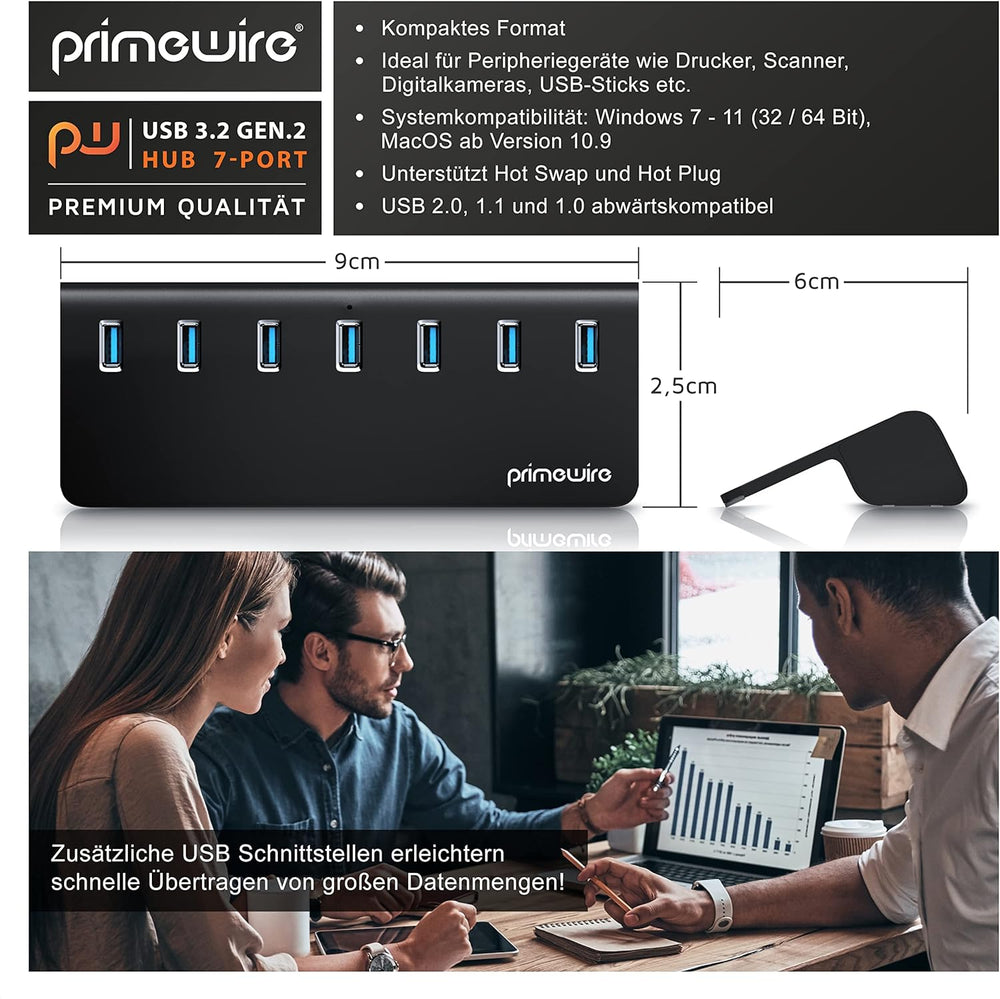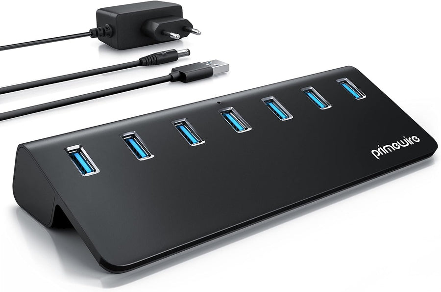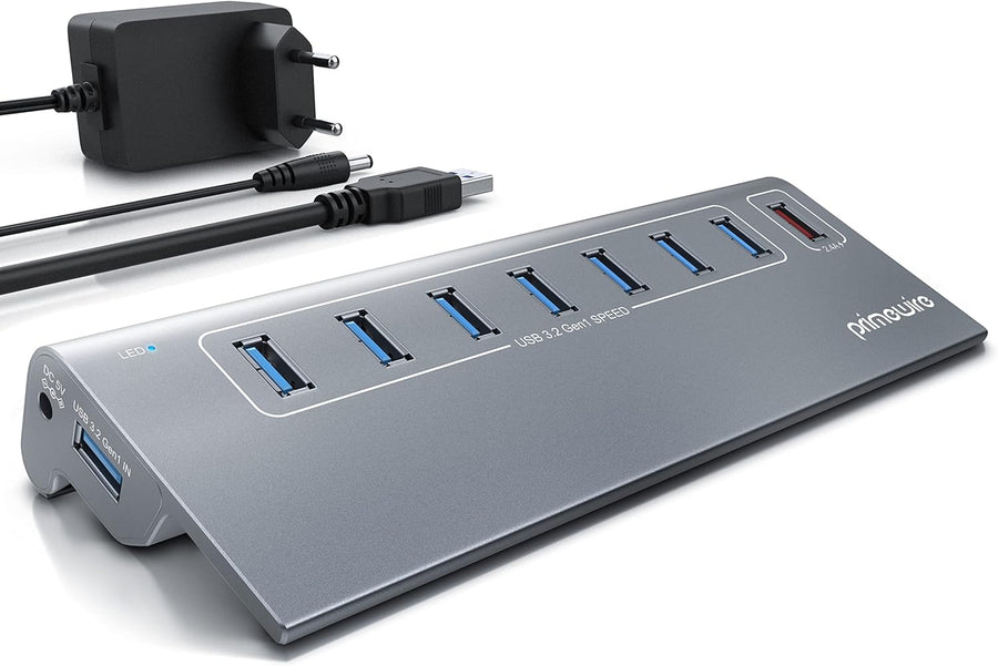 CSL - 7 Port USB 3.2 Gen.2 Hub Aktiv - 10 GBit/s - 7 Port Verteiler mit Netzteil - USB 3.0 USB 3.2 G