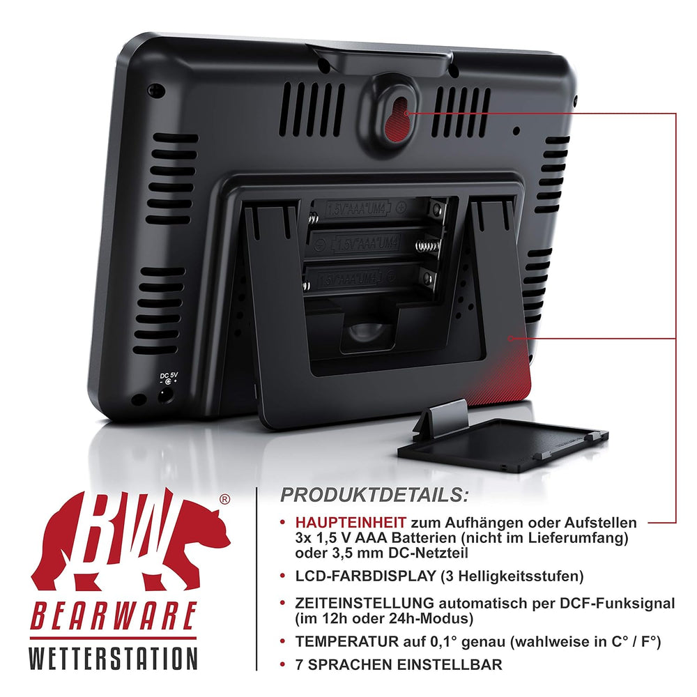 CSL - Funk Wetterstation mit Farbdisplay - inkl. Aussensensor - DCF Empfangssignal Funkuhr - Innen-