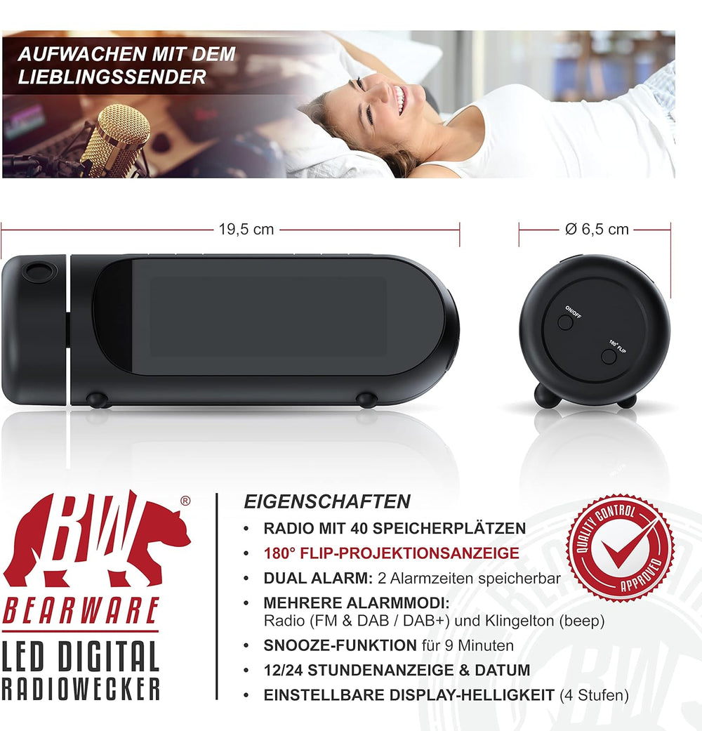 CSL - DAB Plus Radio - Radiowecker mit Projektion, Küchenradio digital, FM und DAB/DAB + Radio mit j