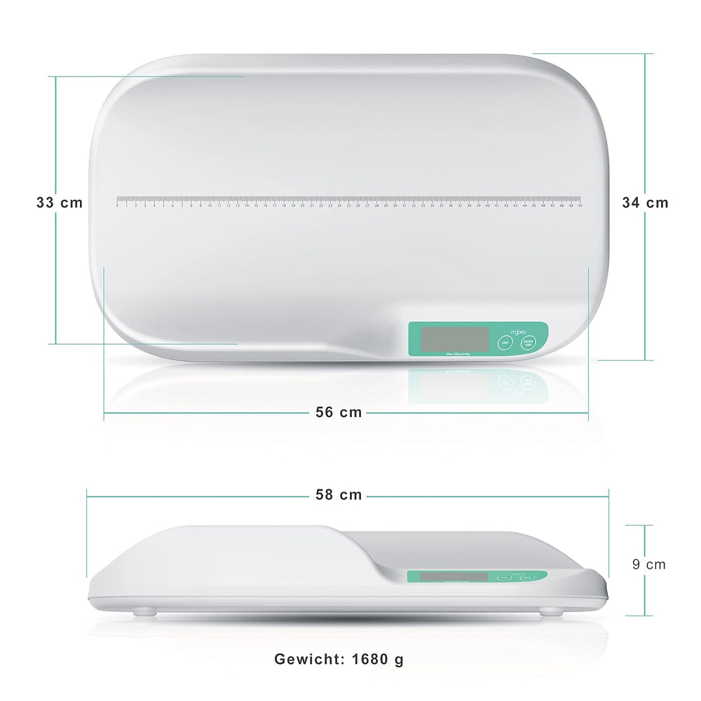 CSL - Babywaage digital - Kinderwaage - Säuglingswaage - Tierwaage - Wiegefläche 56 x 33 cm - 20 g b