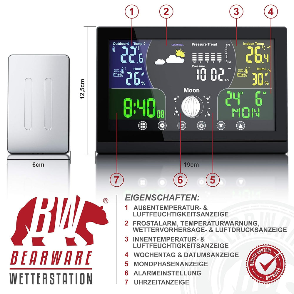 CSL - Funk Wetterstation mit Farbdisplay und Aussensensor - Innen und Aussentemperatur - Barometer m