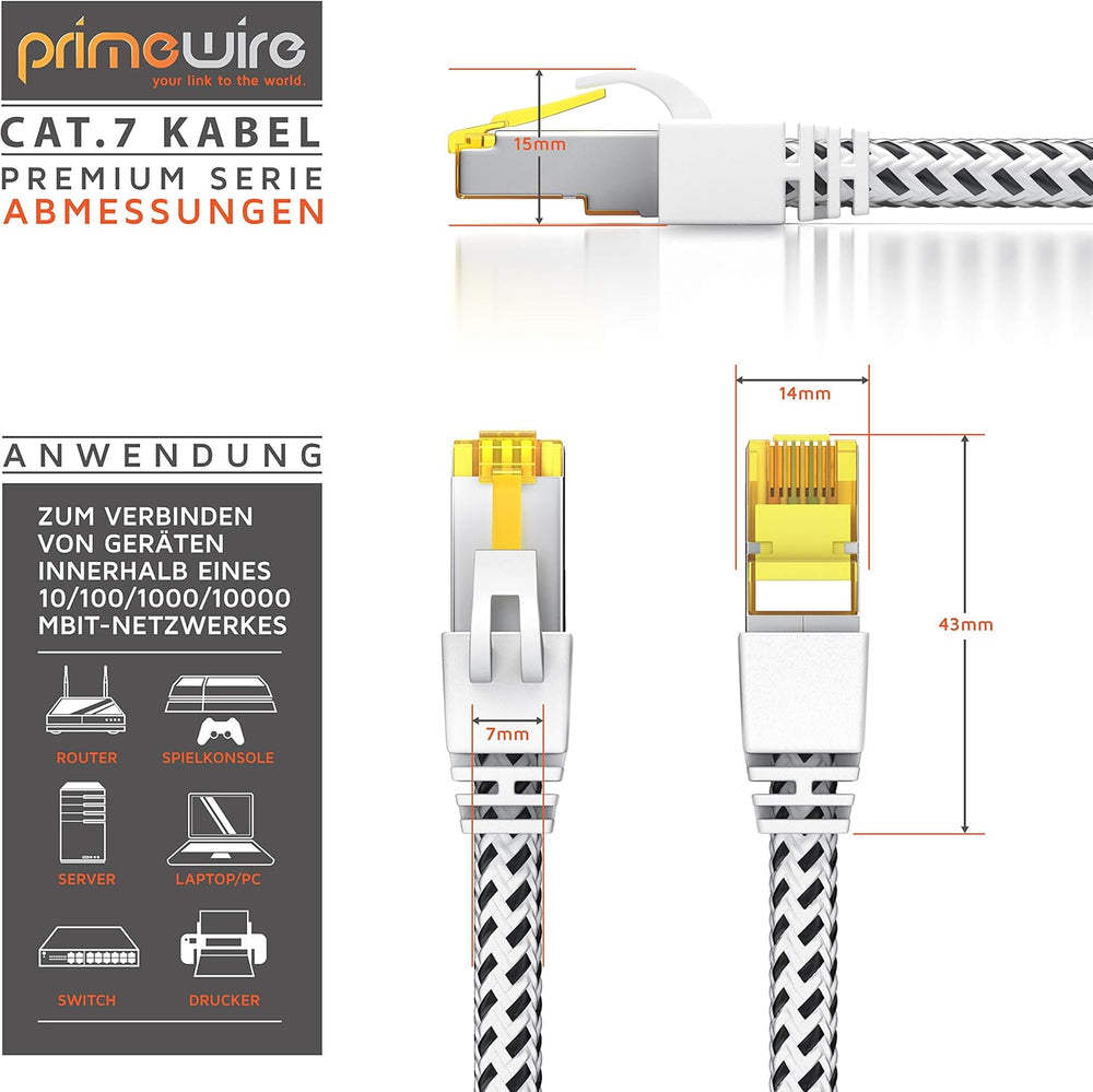 CSL - 30m CAT.7 Netzwerkkabel Gigabit Ethernet LAN Kabel 3 Meter, Baumwollmantel, 1Gbit Patchkabel,