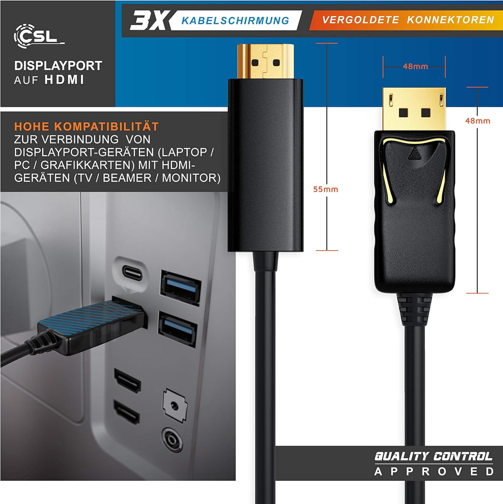 CSL - 5m Full HD Premium DisplayPort DP auf HDMI Kabel High Speed inkl. Audio-Übertragung - 1080p -