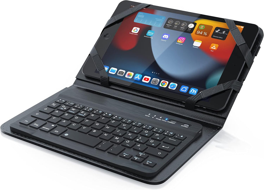 CSL - Bluetooth Tastatur mit Schutzhülle für 9-12 Zoll Tablets - magnetische Befestigung - Lightweig