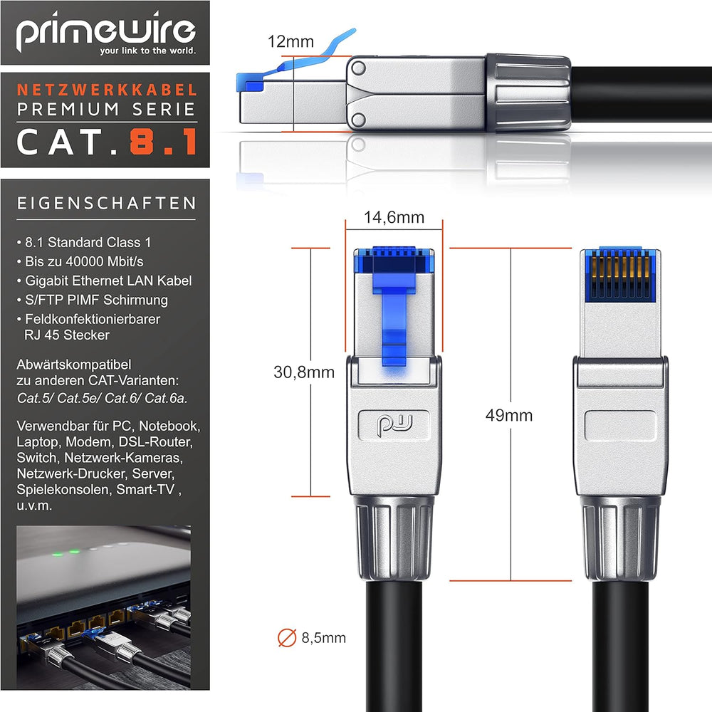 CSL - 8 x Netzwerkstecker feldkonfektionierbar RJ45 CAT 6 CAT 7 CAT 8 - geschirmt 40 GBit/s 2000 MHz