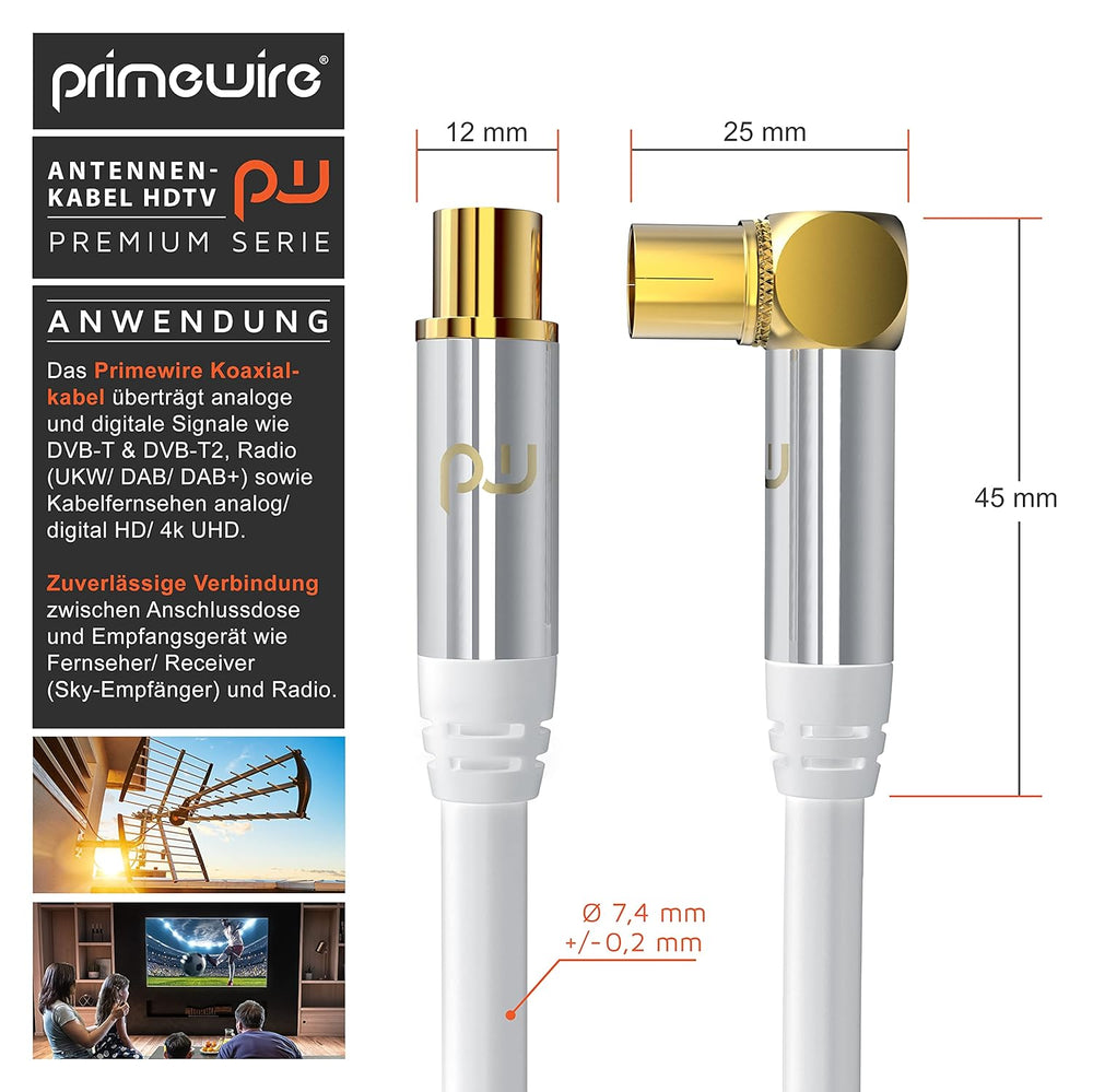 CSL - Antennenkabel gewinkelt 8k 4k HDTF - 7,5m Meter Antennen kabel - Kupplung 90° Winkel zu Stecke