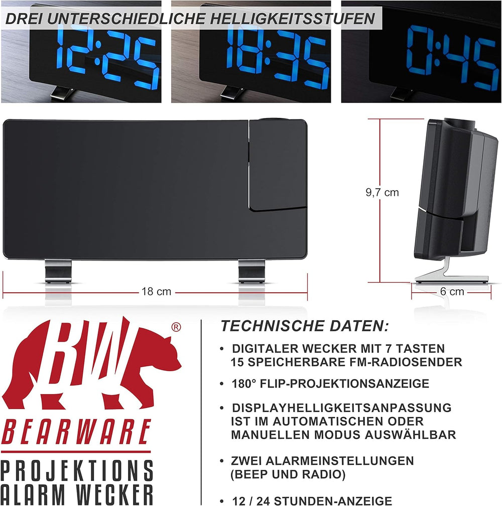 CSL - FM Radiowecker Projektionswecker digitaler Wecker - Flip-Projektionsanzeige - 2 Weckalarme – 1